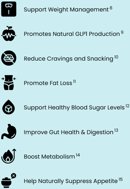 While restoring natural GLP-1 production, balancing hunger, and accelerating fat burning from the inside out!